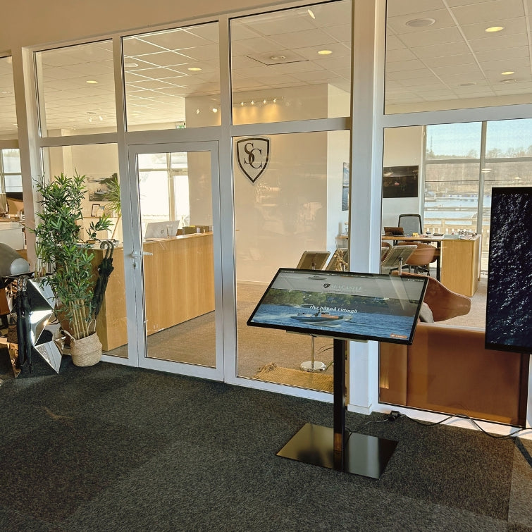 Skärmen har en inbyggd dator, så vi kan visa allt från er hemsida till en applikation.